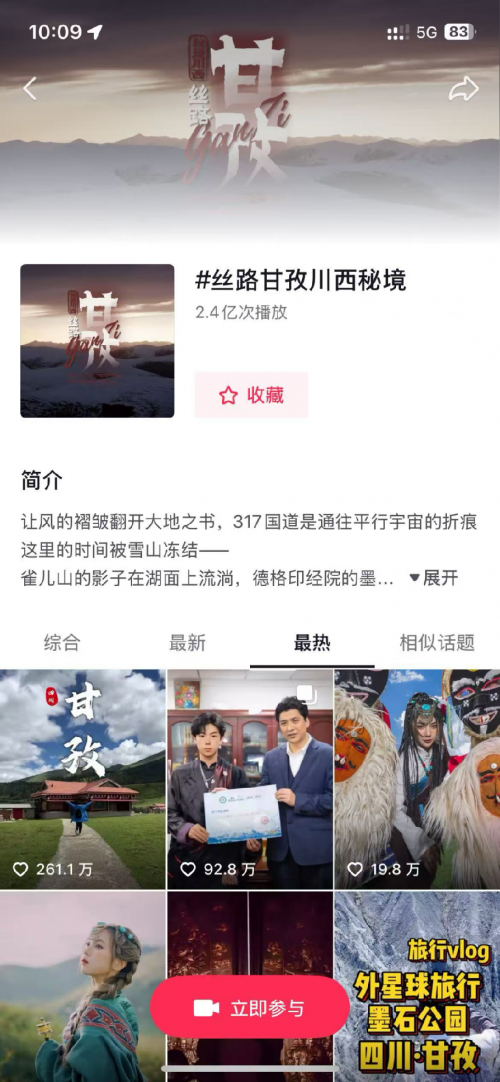 抖音#丝路甘孜·川西秘境#话题数据截图