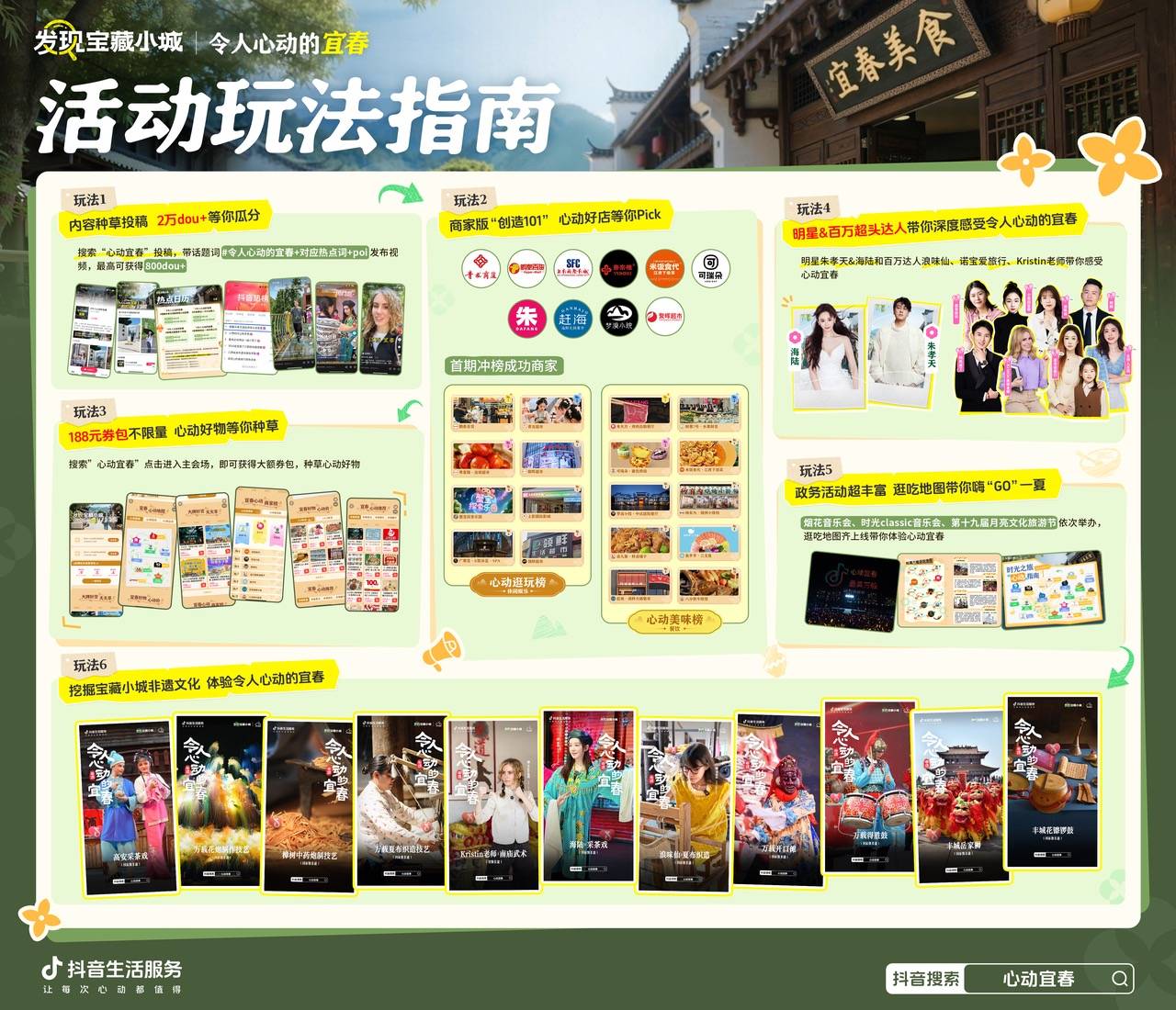 如今,在抖音搜索 “心动宜春”,仍能查看明星达人的探店攻略与 “心动好店” 推荐。宜春的魅力,还在等待更多人亲身探寻 —— 街巷里的地道美食、山间的温润温泉、戏台前的非遗展演,都在静静诉说着这座小城的故事。「心动宜春」的落幕,并非结束,而是更多人认识宜春、爱上宜春的全新开始。