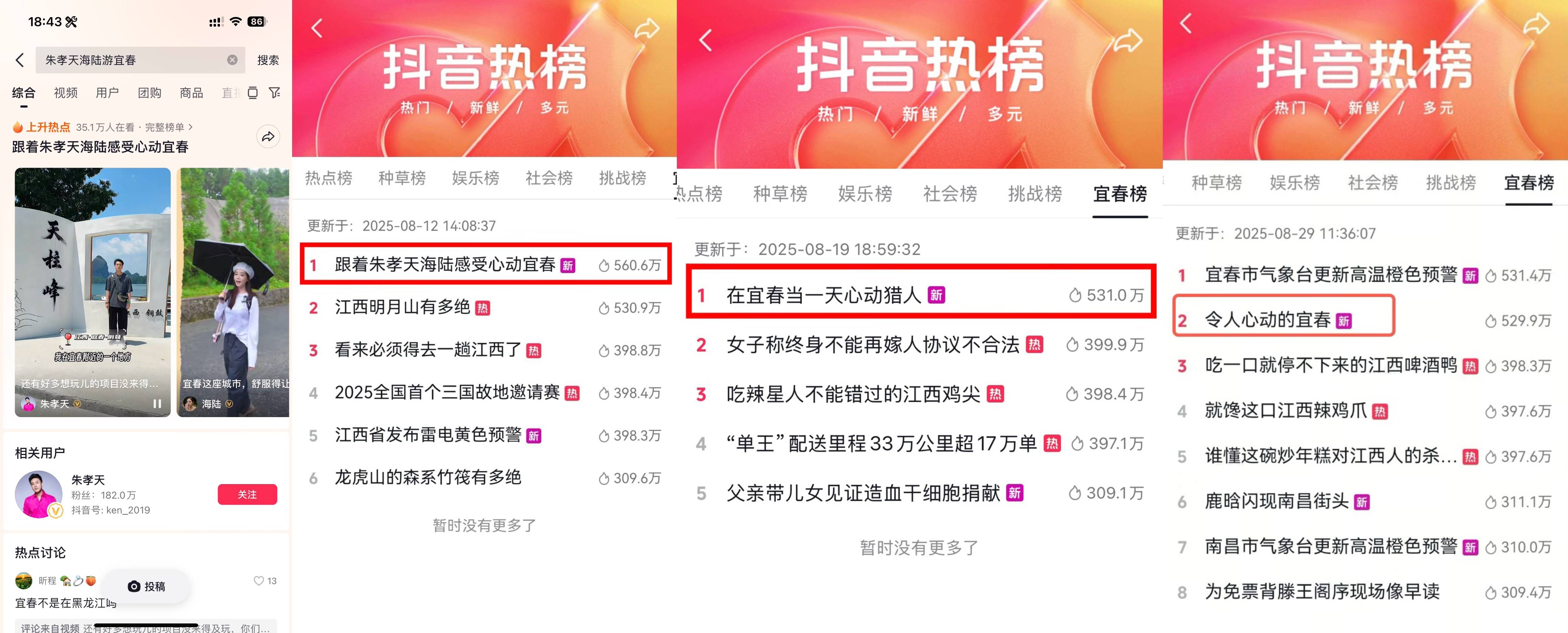 9月底,由抖音生活服务与宜春市文化旅游局联合打造的「发现宝藏小城・令人心动的宜春」主题活动正式落下帷幕。这场持续两个多月的文旅活动,以明星探店、达人种草、全民打卡为核心,成功让藏于赣西的 “宝藏小城” 宜春走进全国大众视野,更以美食、玩乐、福利与文化交织的丰富体验,成为这个夏天备受瞩目的文旅热点。